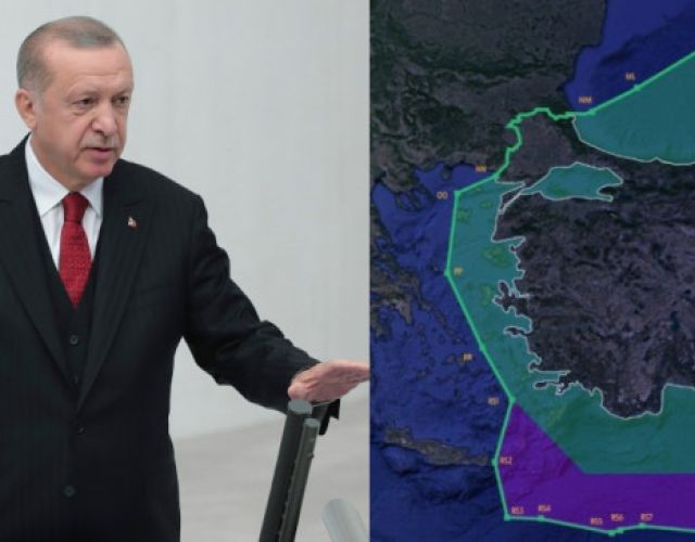 Νέα πρόκληση της Τουρκίας: Υπουργός του Ερντογάν παρουσιάζει χάρτη με το… μισό Αιγαίο δικό της – Η απάντηση της Αθήνας