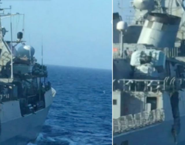 Εικόνα από τις ζημιές που προκλήθηκαν στην τουρκική φρεγάτα «Κεμάλ Ρέις» μετά την επακούμβηση της φρεγάτας «Λήμνος» βλέ…