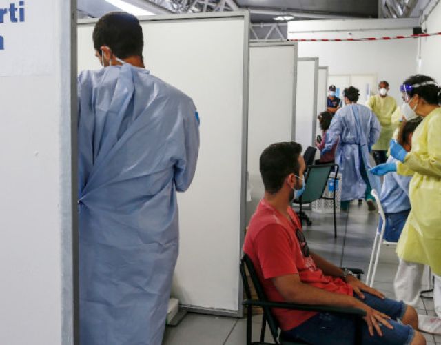 Ταξιδιώτες που επιστρέφουν στην Ιταλία από την Ελλάδα, την Ισπανία, τη Μάλτα και την Κροατία σχηματίζουν ουρές σε κέντρ…