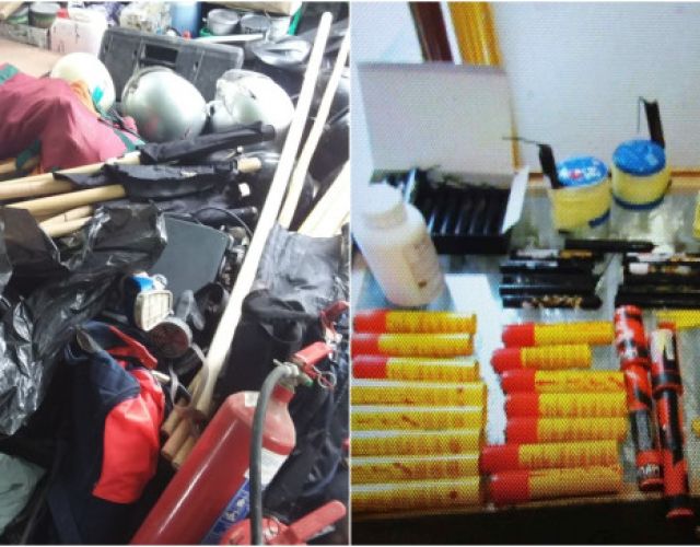 Αυτοσχέδιους εκρηκτικούς μηχανισμούς, γκαζάκια τυλιγμένα με φιτίλια, πλάκες παραφίνης, κράνη, πυροσβεστήρες και αντιασφ…