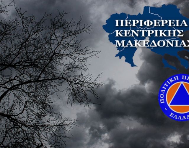Ανακοίνωση από την Αυτοτελή Διεύθυνση Πολιτικής Προστασίας της Περιφέρειας Κεντρικής Μακεδονίας για έκτακτο δελτίο επιδείνωσης καιρού