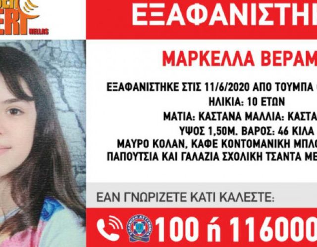 Συναγερμός έχει σημάνει στις Αρχές για την εξαφάνιση ενός 10χρονου κοριτσιού, της Μαρκέλλας Βεράμη, από την Τούμπα Θεσσ…