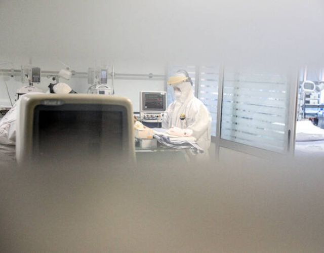 Φορώντας ειδική στολή λόγω κορωνοϊού, προστατευτική μάσκα και γάντια, ο γενικός χειρουργός Εδουάρδος Τσουλφαΐδης, συνοδ…