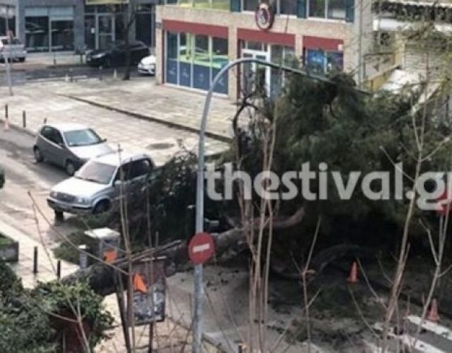 Κακοκαιρία – Θεσσαλονίκη: Επεσε πελώριο δέντρο στην Καλαμαριά – Ξερίζωσε καλώδια, έκλεισε ο δρόμος