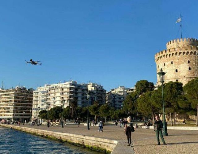 Πτήσεις πάνω από την παραλία της Θεσσαλονίκης πραγματοποιεί drone και μεταδίδει ηχητικό μήνυμα με το οποίο καλεί τον κ…