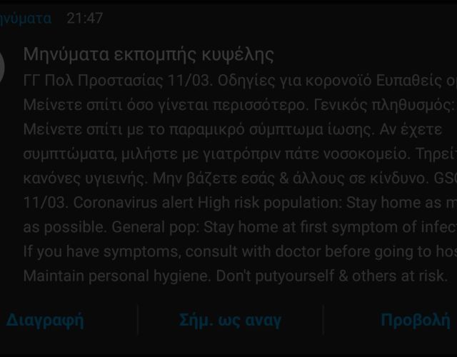 Οδηγίες της Πολιτικής Προστασίας για κορωνοϊό στάλθηκε πριν απο λίγα λεπτά σε όλη την Ελλάδα μέσω του 112 (Μυνήματα Εκπ…