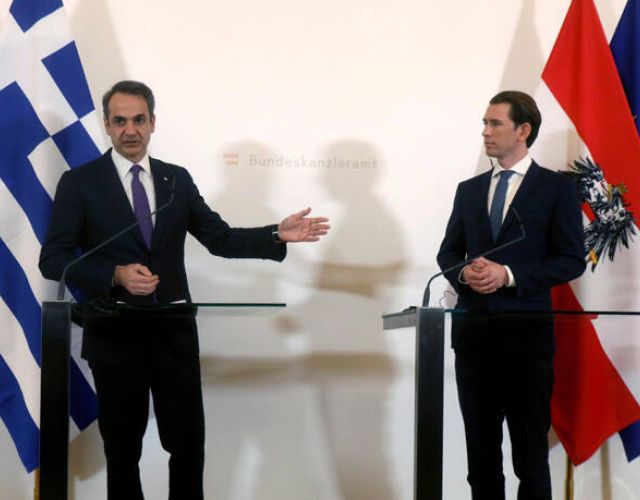 Ο Κυριάκος Μητσοτάκης κατά τη διάρκεια των κοινών δηλώσεών του με τον Αυστριακό καγκελάριο Σεμπάστιαν Κουρτς έκανε ξεχω…