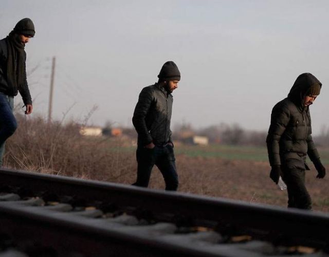 Πρόσφυγες και μετανάστες περνούν μπροστά από την κάμερα του ethnos.gr την ώρα που διασχίζουν το ελληνικό χωριό Σιδηρώ…