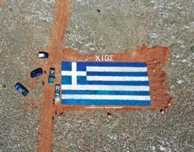 Κούλουμα στη Χίο με χαρταετό και μια τεράστια ελληνική σημαία
