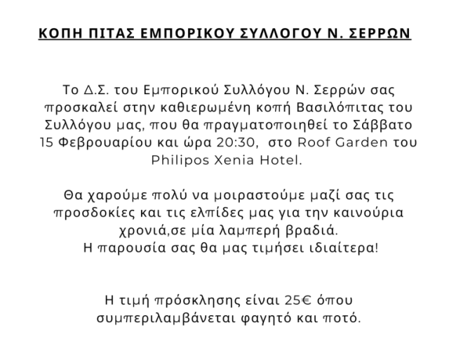 ΚΟΠΗ ΠΙΤΑΣ ΕΜΠΟΡΙΚΟΥ ΣΥΛΛΟΓΟΥ Ν.ΣΕΡΡΩΝ