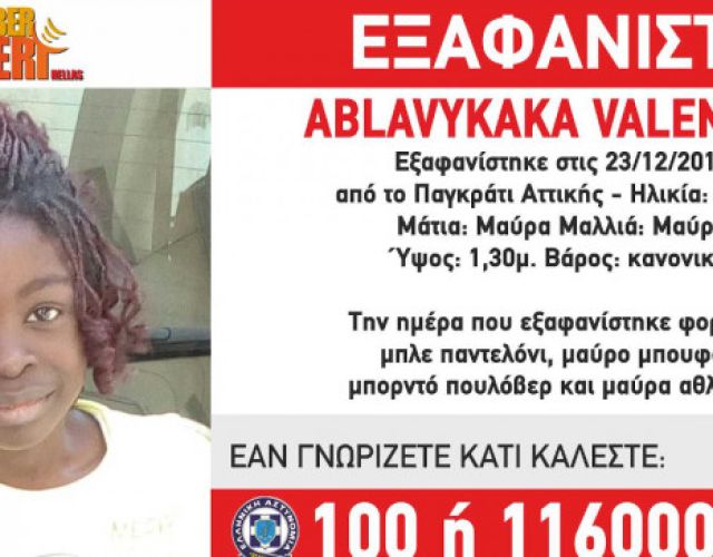 Απενεργοποίηση Amber Alert –Συνεχίζεται η αναζήτηση της 7χρονης Valentine Ablavykaka