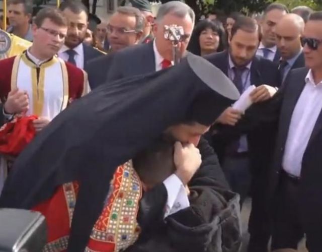 Μια συγκινητική στιγμή κατέγραψαν οι κάμερες, από τη σημερινή υποδοχή του νέου Μητροπολίτη Φθιώτιδας Συμέων. Ο νέος Ποι…