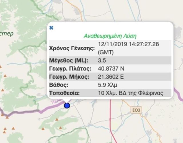 Σεισμός 3,5 ρίχτερ έγινε κοντά στην Φλώρινα. Ο σεισμός μεγέθους 3,5 βαθμών της κλίμακας ρίχτερ έγινε στις 16.27 με το ε…
