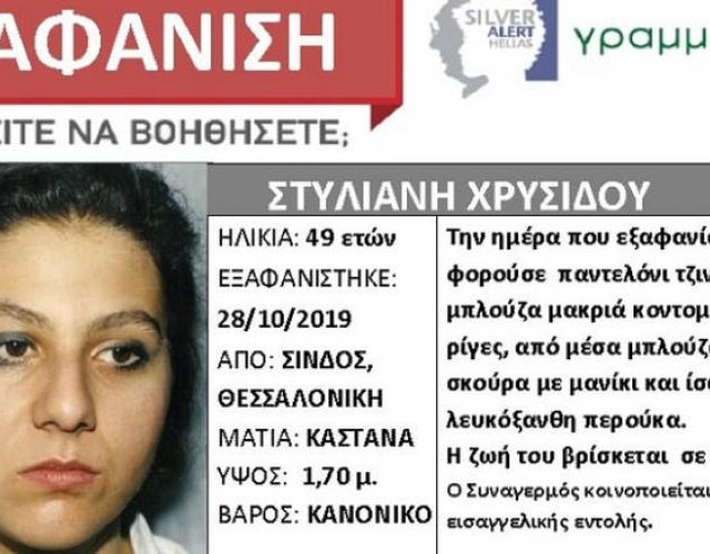 Την εξαφάνιση της 49χρονης Στυλιανής Χρυσίδου από την περιοχή της Σίνδου, στη Θεσσαλονίκη γνωστοποιεί με ανακοίνωσή της…