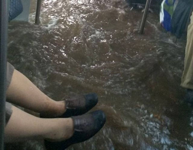Πανικός σε λεωφορείο: Πλημμύρισε και σκαρφάλωναν σε στύλους για να μη βραχούν – Το όχημα έγινε… πλωτό