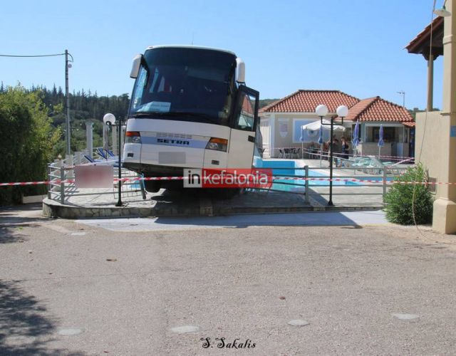 Λεωφορείο έκανε βουτιά σε πισίνα ξενοδοχείου στην Κεφαλλονιά – Δείτε τις εικόνες από το σημείο