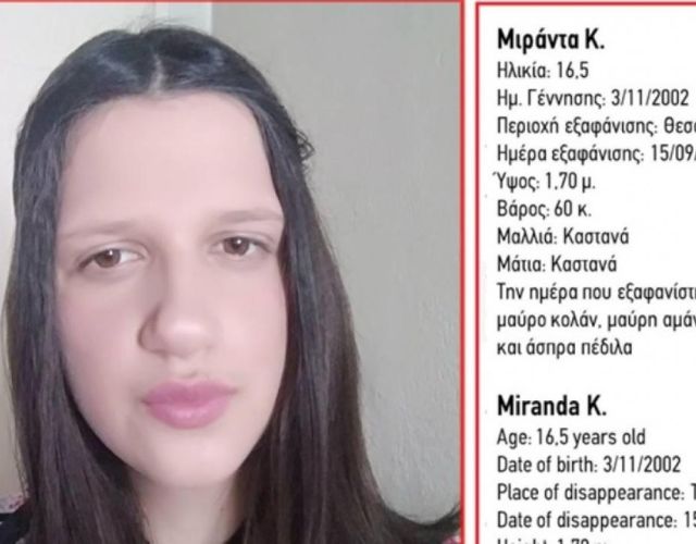 Χαμόγελο του Παιδιού: Εξαφάνιση της νεαρής Μιράντας Κ. από το απόγευμα της Κυριακής 15 Σεπτεμβρίου