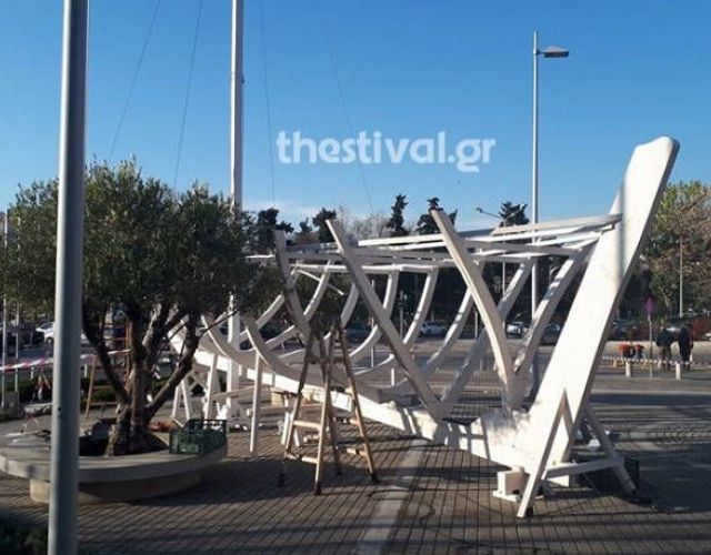 Ξηλώνουν το καράβι από το δημαρχείο στη Θεσσαλονίκη