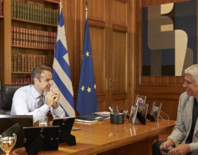 Συνάντηση Παναγιώτη Γιαννάκη με Κυριάκο Μητσοτάκη. Οι δυο άνδρες μοιράζονται την αγάπη για την πορτοκαλί μπάλα το μπά…
