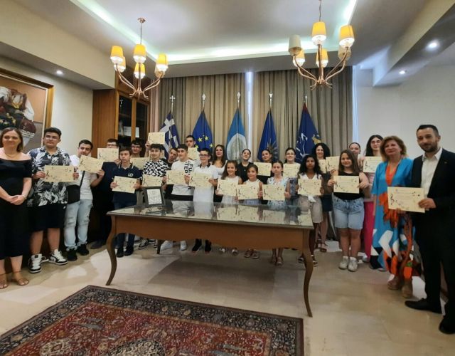 Απονομή αναμνηστικών διπλωμάτων στα μέλη της Φιλαρμονικής Μπάντας από τη Δήμαρχο Β.Μητλιάγκα.