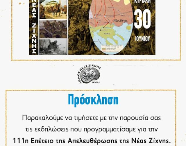 Πρόγραμμα εκδηλώσεων απελευθέρωσης Νέας Ζίχνης – Κυριακή 30 Ιουλίου
