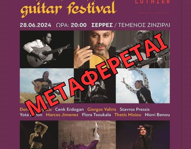 ΤΟ 1ο Φεστιβάλ Φλαμένκο Κιθάρας λόγω έκτακτων καιρικών φαινομένων μεταφέρεται στην Κεντρική Σκηνή του Δημοτικού Θεάτρου…
