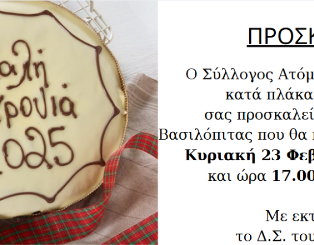 Ο σύλλογος ατόμων με σκλήρυνση κατά πλάκας κόβει την βασιλόπιτα του