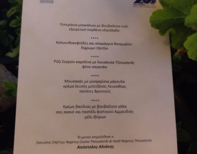 Το μενού του cityzen στο δείπνο του Δήμου Σερρών προς τιμήν της ΠτΔ Κατερίνας Σακελλαροπούλου