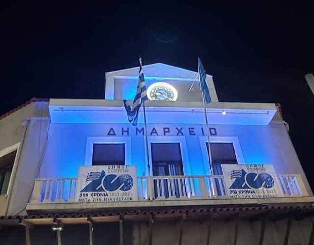 Φωταγωγήθηκε με γαλάζια χρώματα το Δημαρχείο των Σερρών