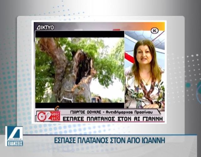Έσπασε πλάτανος στον Άγιο Ιωάννη Σερρών. Από θαύμα δεν υπήρχαν θύματα