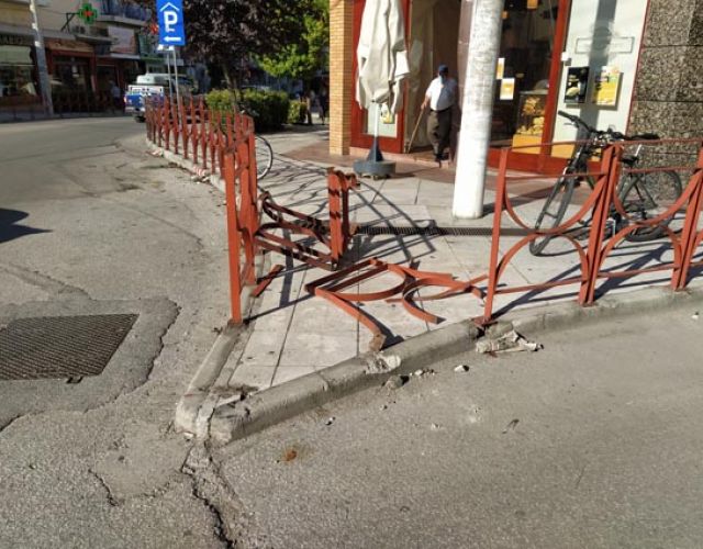 Σέρρες: Αυτοκίνητο έπεσε σε κιγκλιδώματα πεζοδρομίου στην Οδό Βενιζέλου