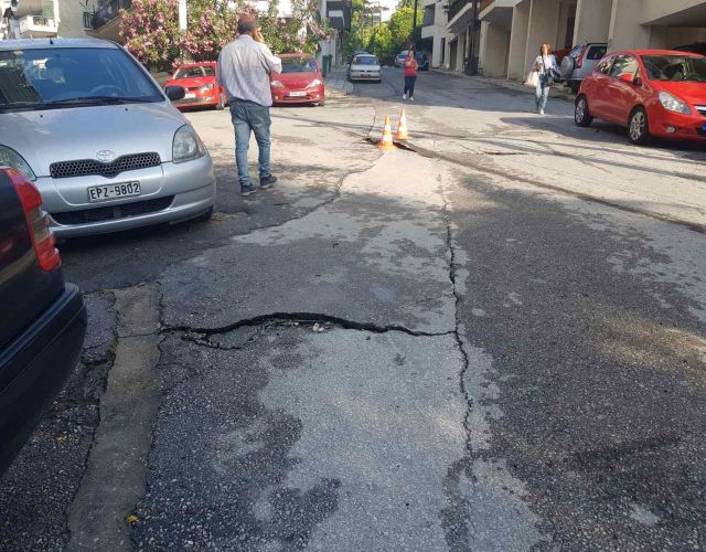Σέρρες: Νέα καθίζηση στην Μ. Ανδρόνικου (Φωτογραφίες)