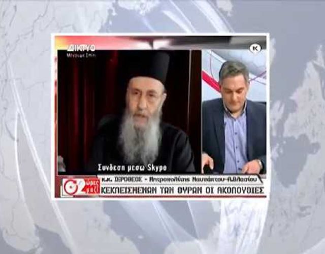 O Μητροπολίτης Ναυπάκτου στο ΔΙΚΤΥΟ: “H εκκλησία της Ελλάδος συντάσσεται στην προσπάθεια κατά της διασποράς του Κορονοϊου”