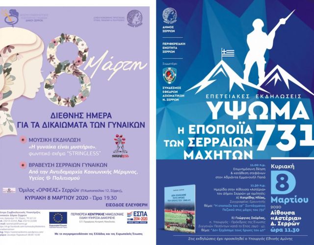 Αναβάλλονται δύο εκδηλώσεις στο Δήμο Σερρών