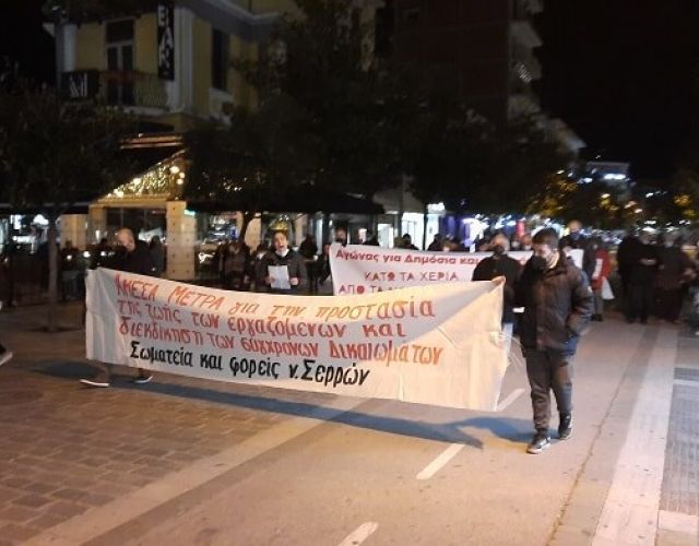 Παράσταση διαμαρτυρίας πραγματοποίησαν το απόγευμα της Δευτέρας φορείς της Π.Ε. Σερρών και πιο συγκεκριμένα η Ένωση Νο…