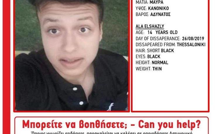 Από τη Δευτέρα 26 Αυγούστου αγνοείται η τύχη 14χρονου, στη Θεσσαλονίκη.