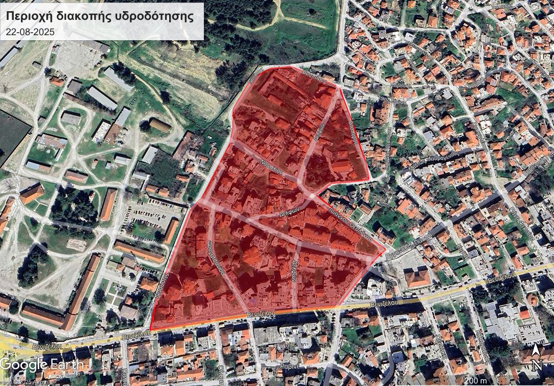 Λόγω αναγκαίας επισκευής βλάβης του πρωτεύοντος δικτύου ύδρευσης στην οδό Ναυπλίου, αύριο Παρασκευή 22-08-2025 και στις ώρες από 08:30’ έως 13:30’, θα πραγματοποιηθεί διακοπή υδροδότησης στην περιοχή που περικλείεται από τις οδούς: Ελ. Βενιζέλου, Ναούσης, 19ης Μαΐου, Βοσπόρου και Ιωάννου Θεολόγου.
