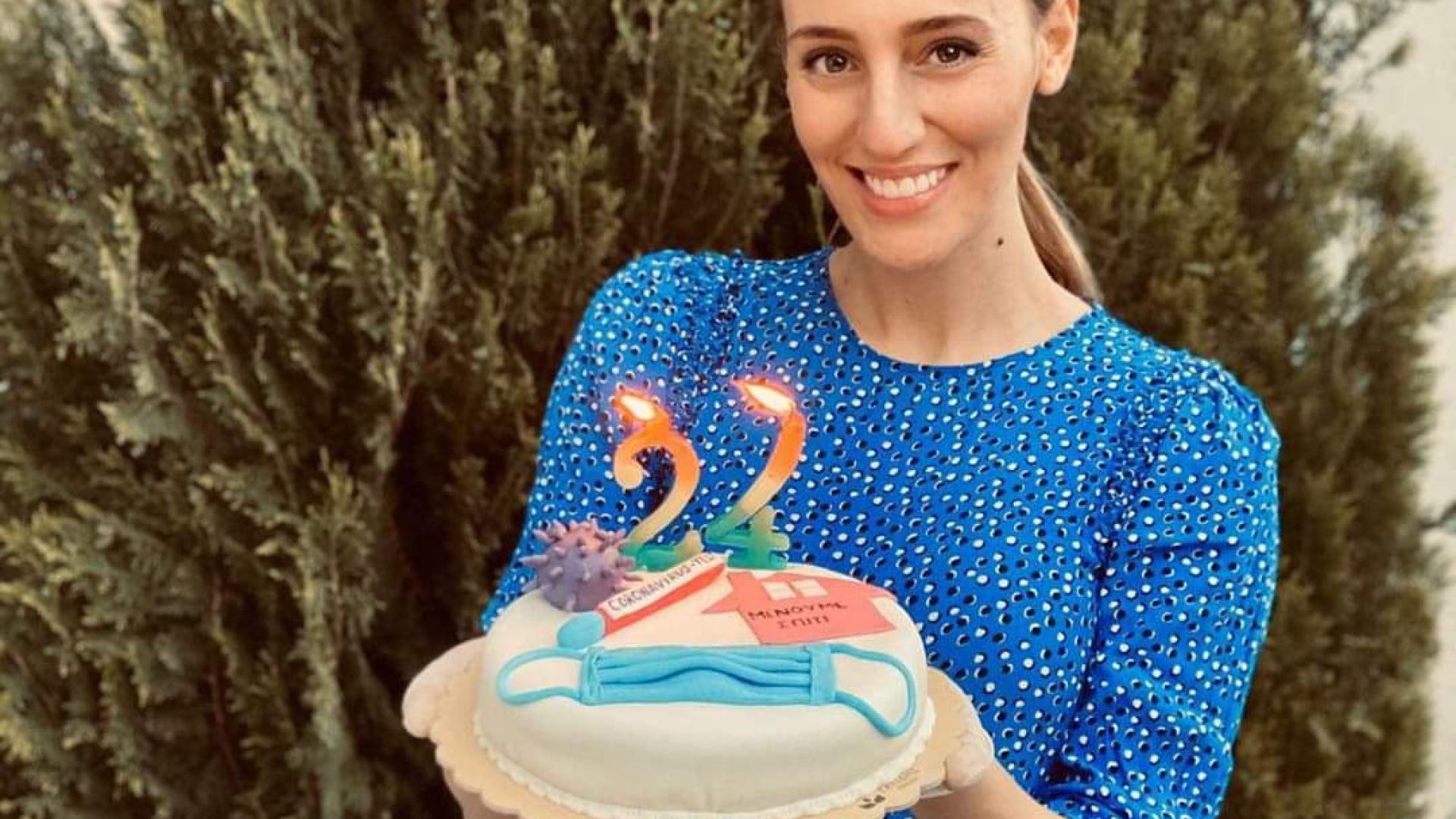 Στην τούρτα της ήταν ζωγραφισμένα, μεταξύ άλλων, το λογότυπο του “Μένουμε Σπίτι” μαζί με το μήνυμα, ένα τεστ για τον κορονοϊό και μία χειρουργική μάσκα, ενώ τα αγαπημένα της πρόσωπα εμφανίστηκαν στο πεζοδρόμιο κάτω από το μπαλκόνι της, κρατώντας χαρτιά στα χέρια που έγραφαν χρόνια πολλά! Κάτι, που φυσικά δεν άφησε ασχολίαστο και η ίδια στην ανάρτησή της στα μέσα κοινωνικής δικτύωσης.