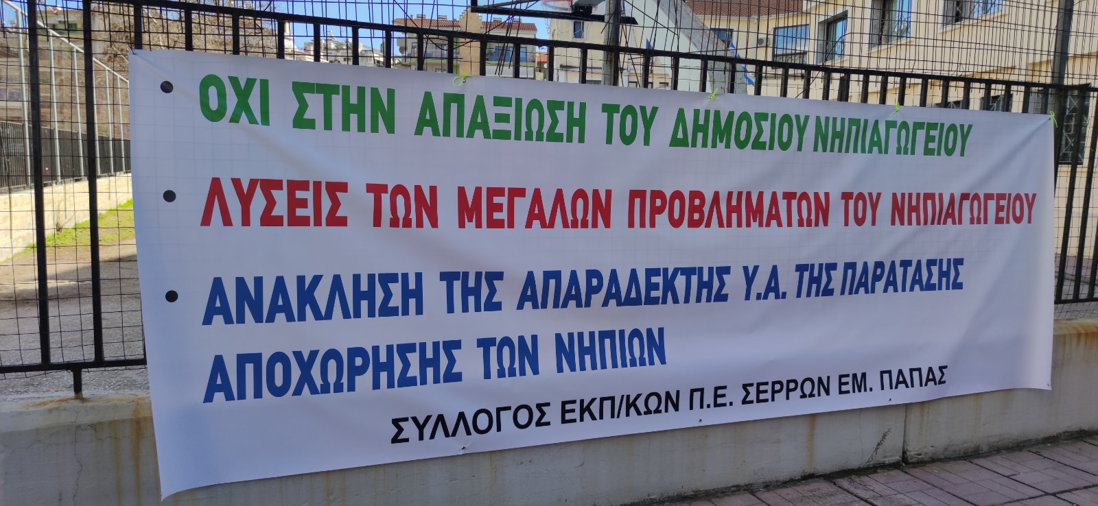 Διαμαρτυρία εκπαιδευτικών για την αύξηση του ωραρίου αποχώρησης των νηπίων