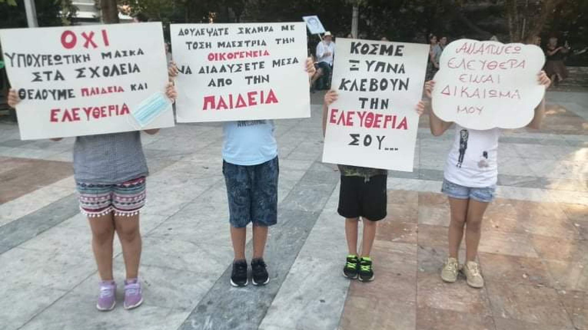 Διαμαρτυρία τώρα στην πλατεία ελευθερίας από γονείς και παιδιά για την υποχρεωτική μάσκα στα σχολεία.