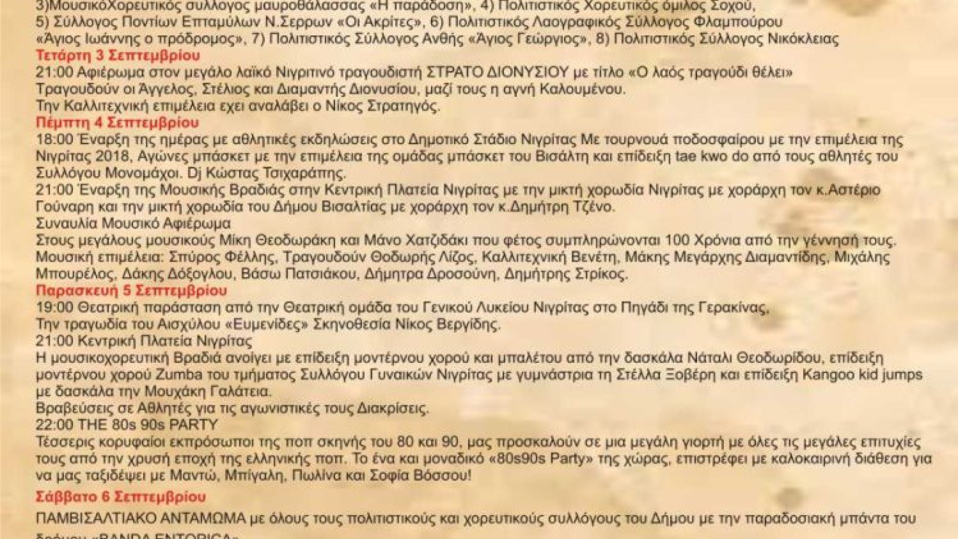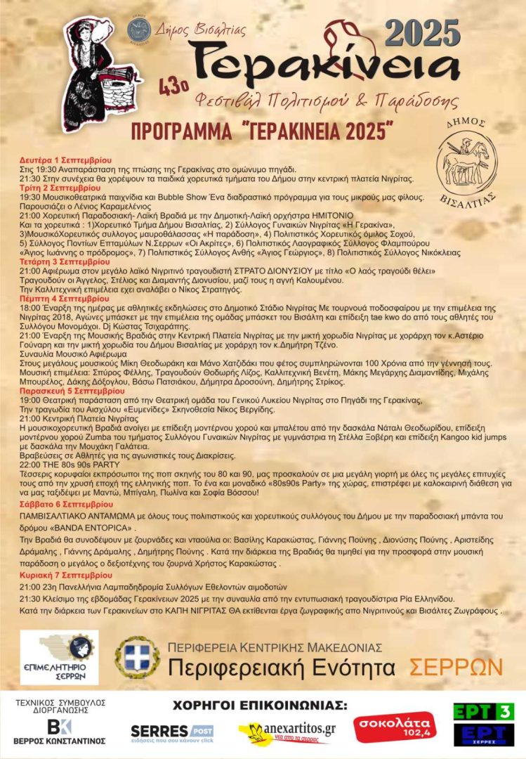 Δήμος Βισαλτίας: Πρόγραμμα για τα “Γερακίνεια 2025”