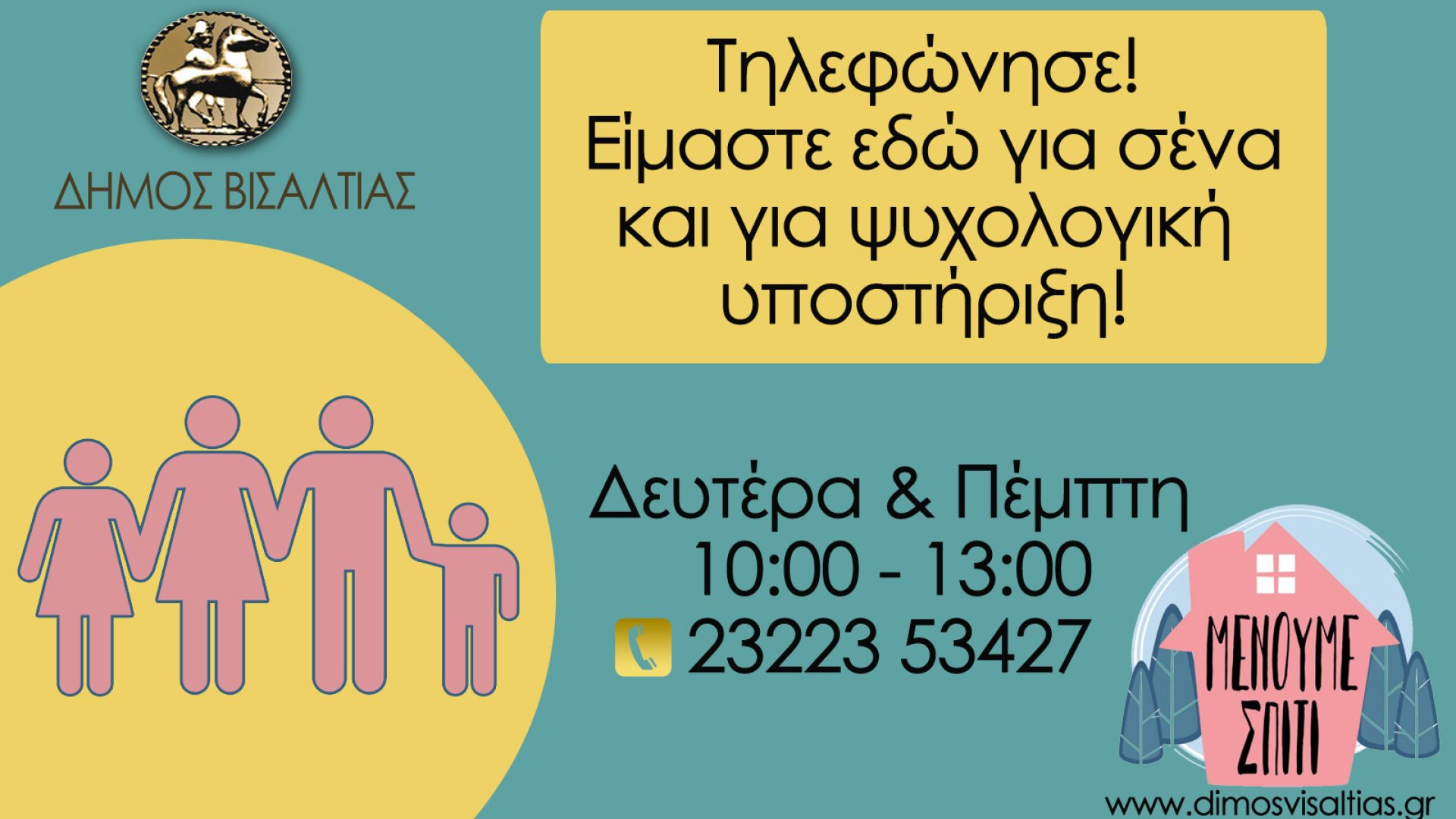 - Την ίδια ώρα, εξειδικευμένο επιστημονικό προσωπικό θα βρίσκεται σε πλήρη ετοιμότητα προκειμένου να προσφέρουν τις υπηρεσίες του στους δημότες Βισαλτίας για τηλεφωνική ψυχολογική υποστήριξη. Οι ενδιαφερόμενοι μπορούν να τηλεφωνούν: