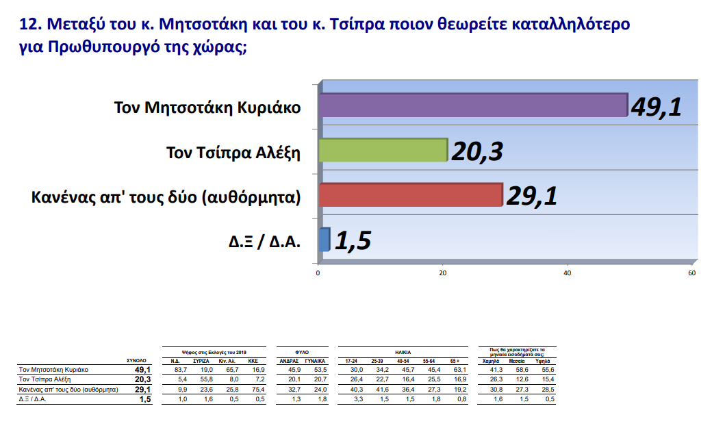 Ο Κυριάκος Μητσοτάκης προηγείται σταθερά με μεγάλη διαφορά του Αλέξη Τσίπρα στην καταλληλότητα για πρωθυπουργία.