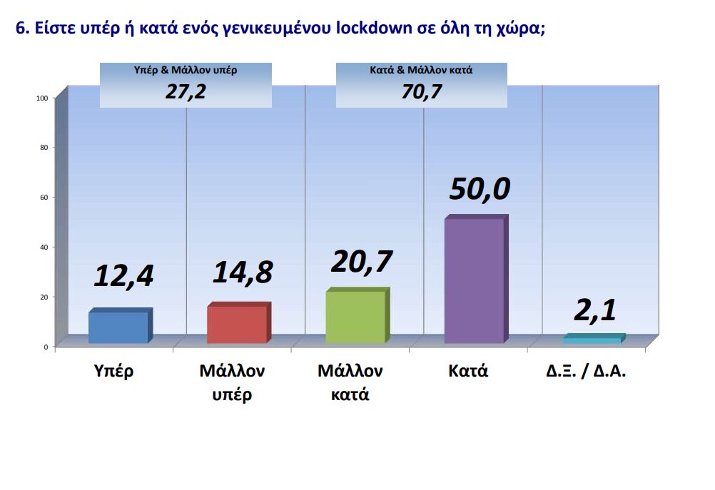 Απαραίτητα (σε ποσοστό 71,1%) αλλά όχι επαρκή για την αντιμετώπιση της πανδημίας (σε ποσοστό 62,1%) θεωρούν οι πολίτες τα μέτρα που ισχύουν σήμερα στη χώρα για τον κορωνοϊό.