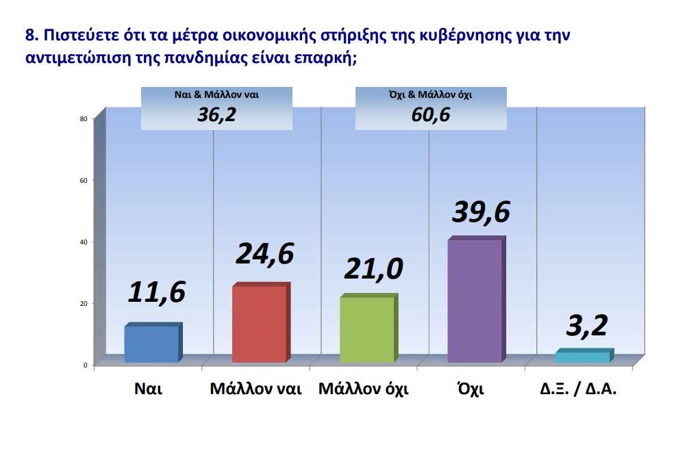 Ωστόσο, οι πολίτες στην πλειοψηφία τους κρίνουν ότι τα μέτρα που έχουν ληφθεί δεν είναι επαρκή (60,6%).