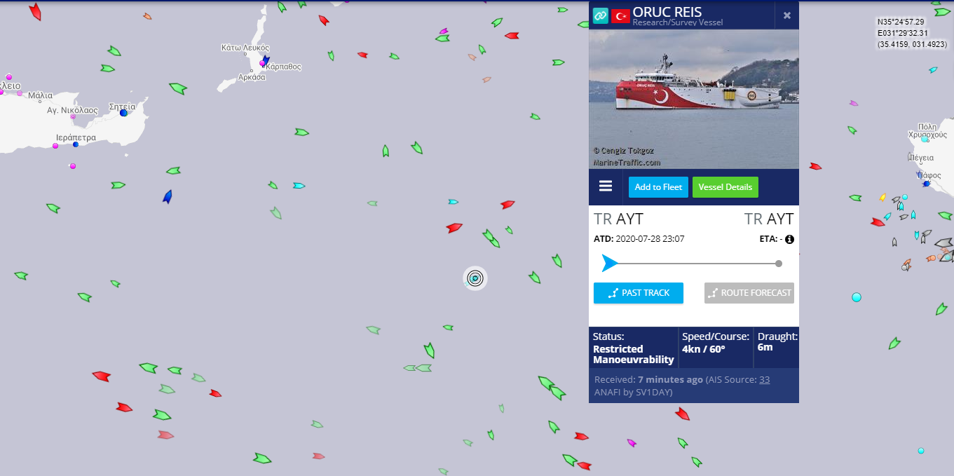 Η πορεία του Oruc Reis ως τις 5 τα ξημερώματα