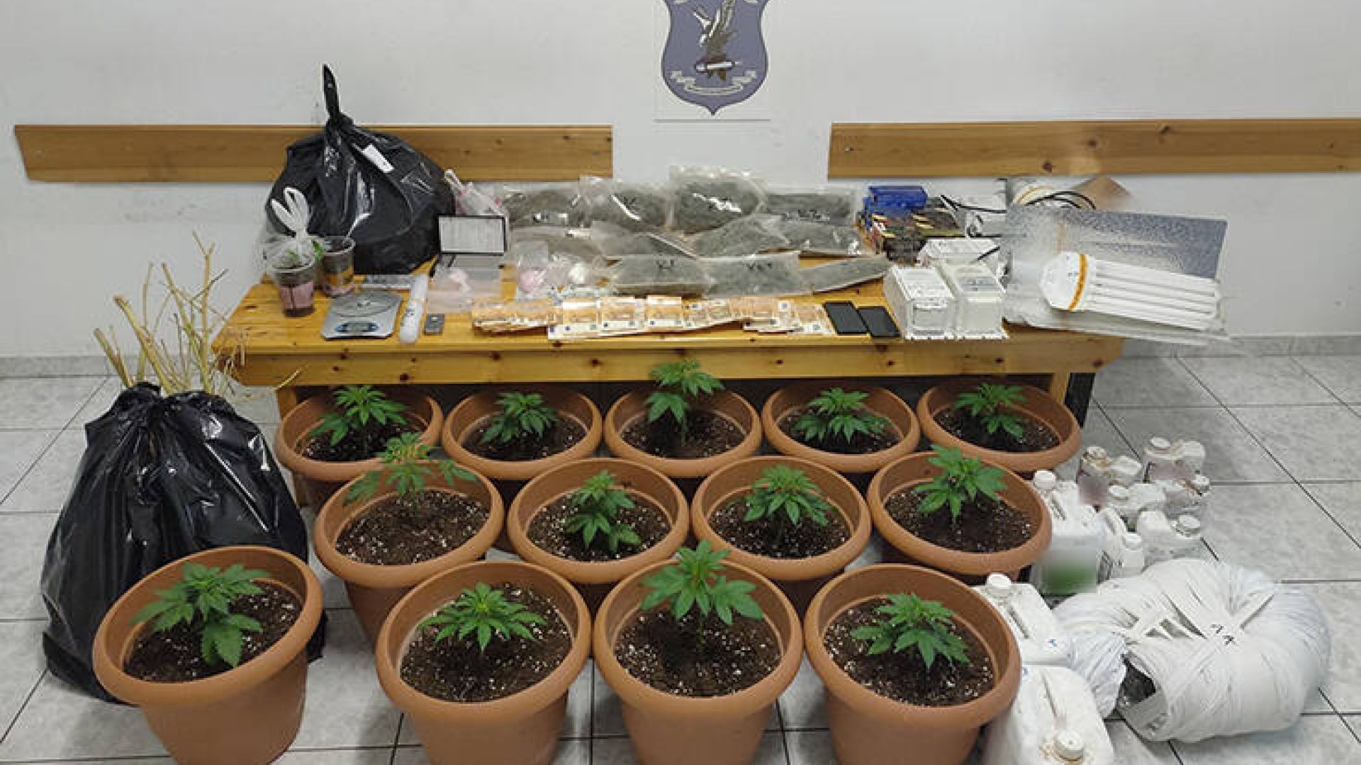 Από το σημείο κατασχέθηκαν 15 γλάστρες στις οποίες καλλιεργούσαν δενδρύλλια κάνναβης και περισσότερα από 2 κιλά χασίς. Σε έρευνες που ακολούθησαν στα σπίτια τους κατασχέθηκαν -επιπλέον- μικροποσότητες κοκαΐνης και κάνναβης, ηλεκτρονικές ζυγαριές, χρηματικά ποσά και εκατοντάδες φυσίγγια.