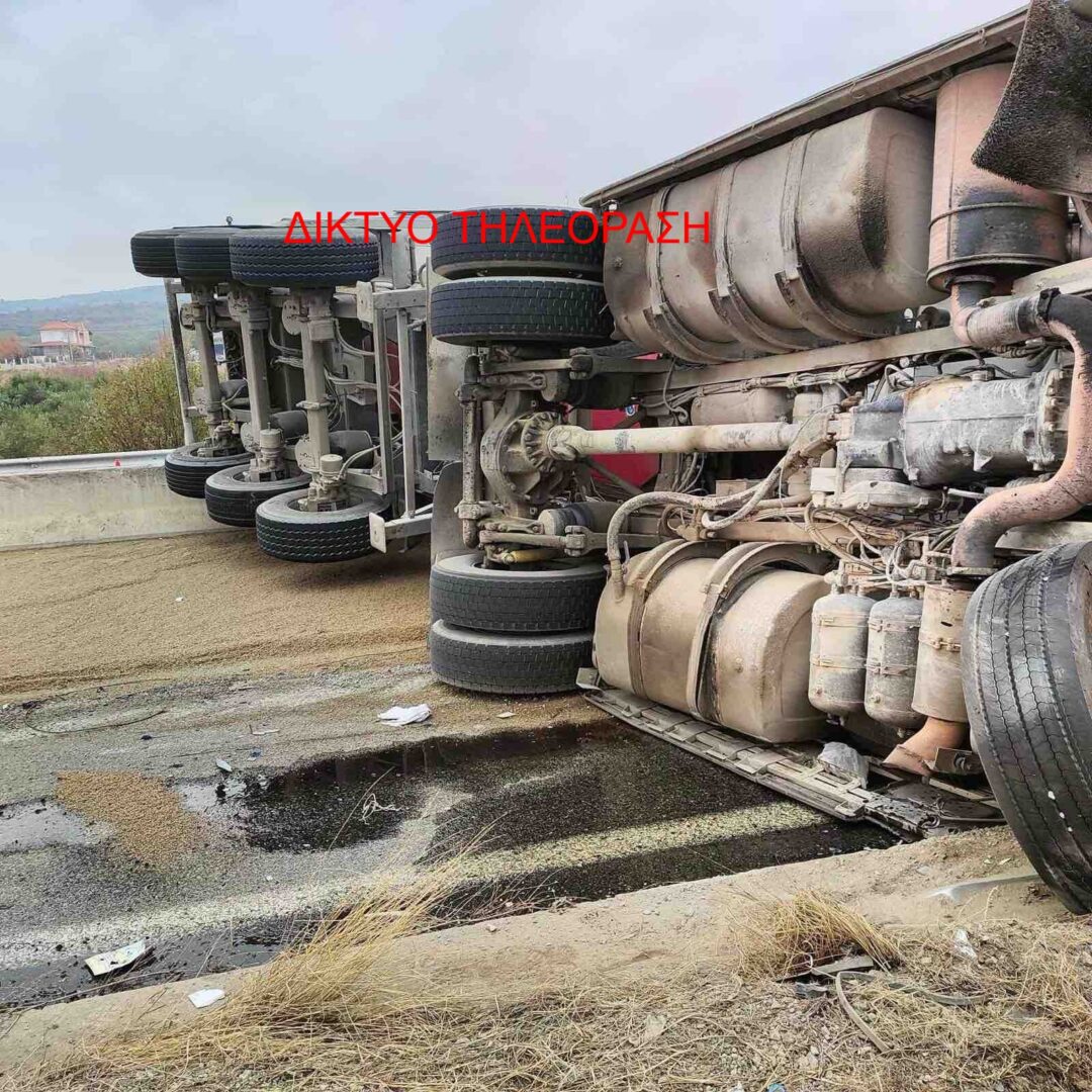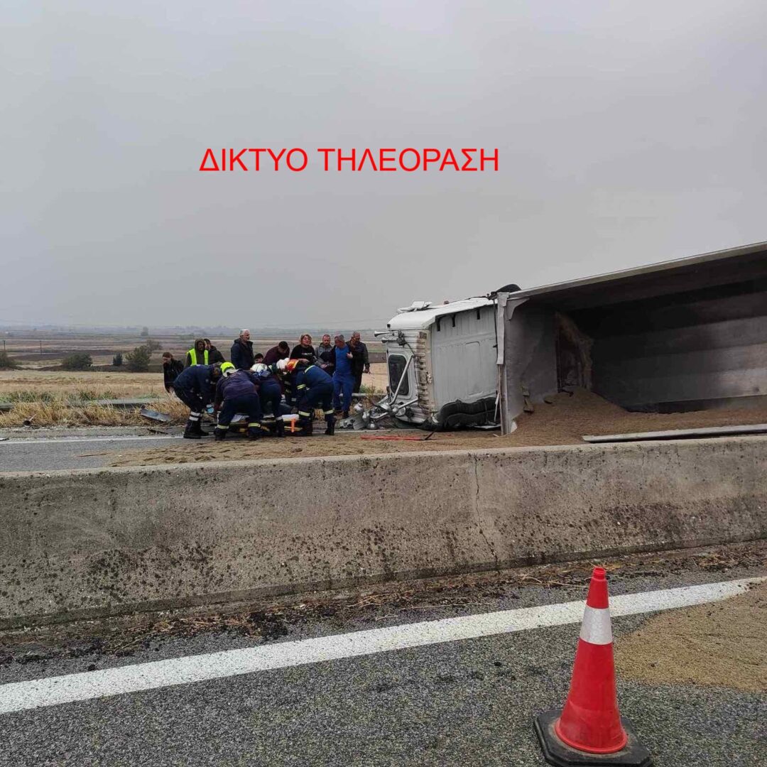 Έκτακτο: Ανετράπη νταλίκα στο ύψος του Βαμβακοφύτου. Κλειστό το ρεύμα προς Σέρρες. Στο νοσοκομείο ο οδηγός!