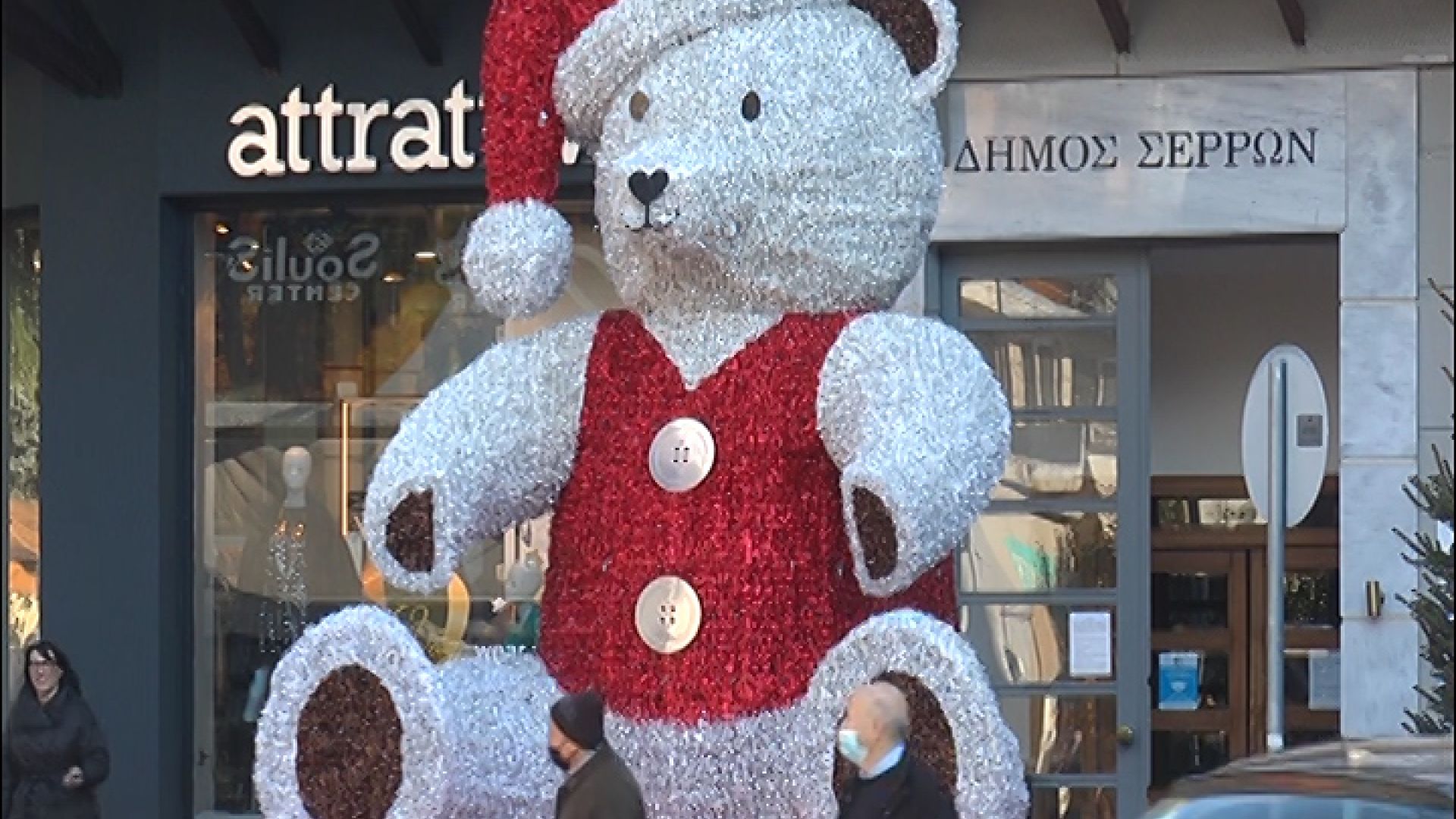 Μια μεγάλη έκπληξη περίμενε τις Σερραίες και τους Σερραίους που βρέθηκαν σήμερα στις 12 το μεσημέρι στο κέντρο της πόλης των Σερρών. Ένας χριστουγεννιάτικος αρκούδος τοποθετήθηκε στην είσοδο του δημαρχείου στο πλαίσιο του στολισμού της πόλης.