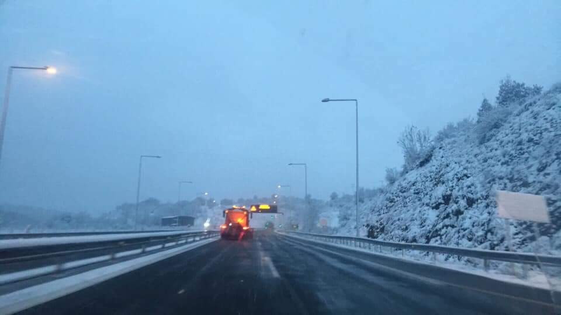 Οι πρώτες νιφάδες χιονιού έκαναν την εμφάνισή τους στο Νομό Σερρών και συγκεκριμένα στην Εθνική Οδό Σερρών-Θεσσαλονίκης, αμέσως μετά τα διόδια Στρυμονικού, όπως φαίνεται και στις φωτογραφίες που ανήρτησε στον προσωπικό του λογαριασμό στο facebook ο πρώην Αντιδήμαρχος Σερρών Στέργιος Γαλάνης. Μάλιστα, όπως αναφέρει, είναι απαραίτητη η χρήση αντιολισθητικών αλυσίδων.